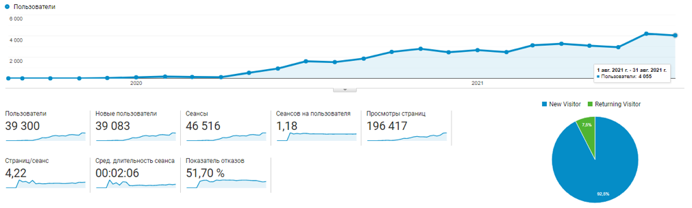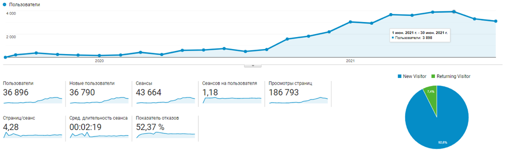 За рахунок роботи з конверсією сайту у 2020-2021 роках після коронавірусного спаду сайт збільшив кількість лідів та значно збільшив кількість продажів.