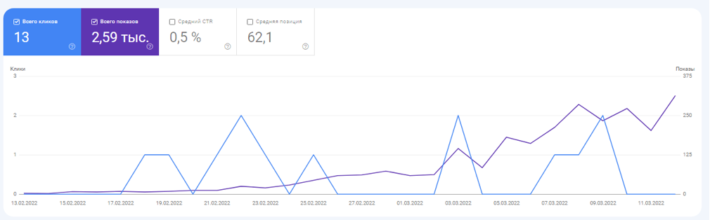 Динаміка видимості сайту за Лютий-Березень (Google Search Console)